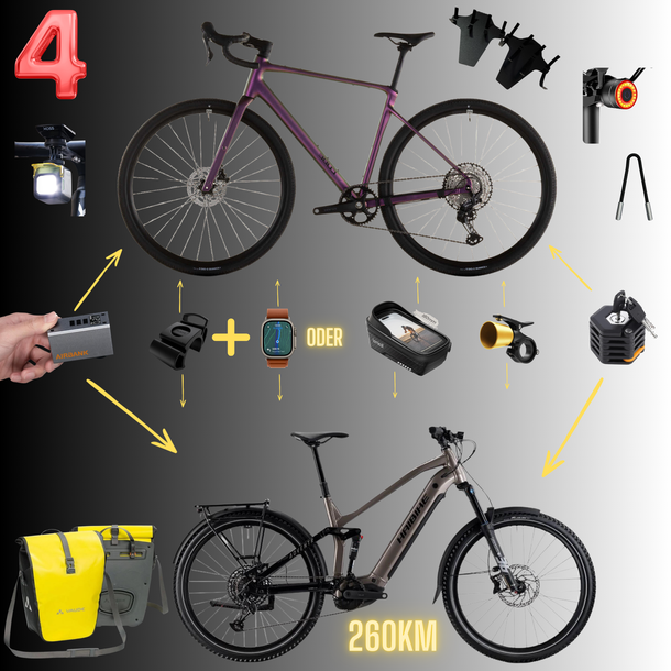 4 Gravel Bike& E-Bike Fully, Fahrradtaschen, Navi & E-Luftpumpe: